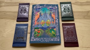 Cet album aura des découpes pour pouvoir y glisser et ranger les cartes facilement, et contiendra également les histoires écrites par chaque artiste, que vous pourrez joyeusement mélanger lors de vos parties endiablées !