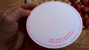 Les tartes et leurs enveloppes sont découpées à la forme sur-mesure et imprimées moitié en numérique, moitié en letterpress par Matière Grasse pour deux fois plus de saveur !